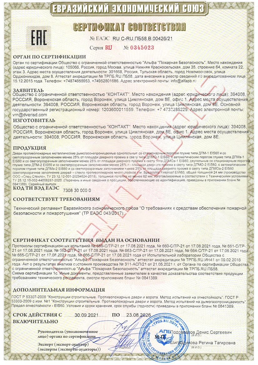 ДПМ-1 EI-90 с автопорогомОгнестойкость