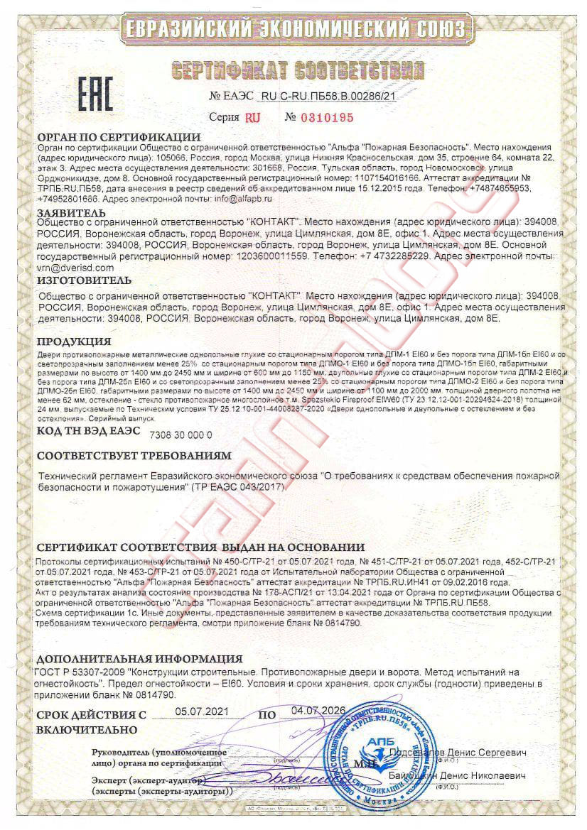 ДПМО-1 EIS-90 с круглым окномОгнестойкость